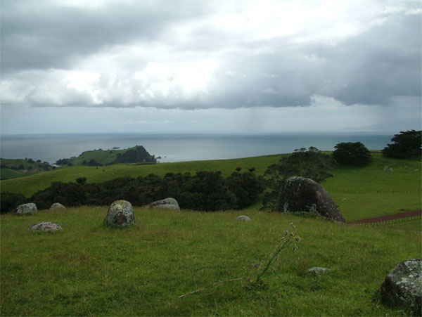 The fields at Stony Batter are covered with huge bolders from the days when the five volcanoes that surround Auckland were active. There are walking trails through the fields that are shared by people, sheep and cows. Be careful where you step.